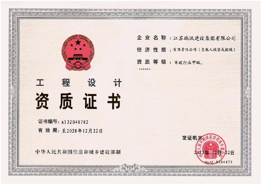 江蘇瑞沃建設(shè)集團(tuán)有限公司成立于2007年,是一家以市政、交通工程建設(shè)為主導(dǎo),集房屋建筑、交通安全設(shè)施、城市道路照明工程、電力工程、隧道工程、航道工程及投融資為一體的綜合性企業(yè)。企業(yè)注冊資本60000萬元,現(xiàn)有各類技術(shù)人員580人,其中中、高級以上人員498人,注冊類人員268人,一、二級建造師166人。公司榮獲“江蘇省建筑業(yè)優(yōu)秀企業(yè)”、“江蘇省五一勞動獎狀”,連續(xù)多年被評為“揚(yáng)州市先進(jìn)企業(yè)”、“江蘇省建筑業(yè)百強(qiáng)企業(yè)”,連續(xù)八年蟬聯(lián)百強(qiáng)企業(yè)基礎(chǔ)設(shè)施類第一名。