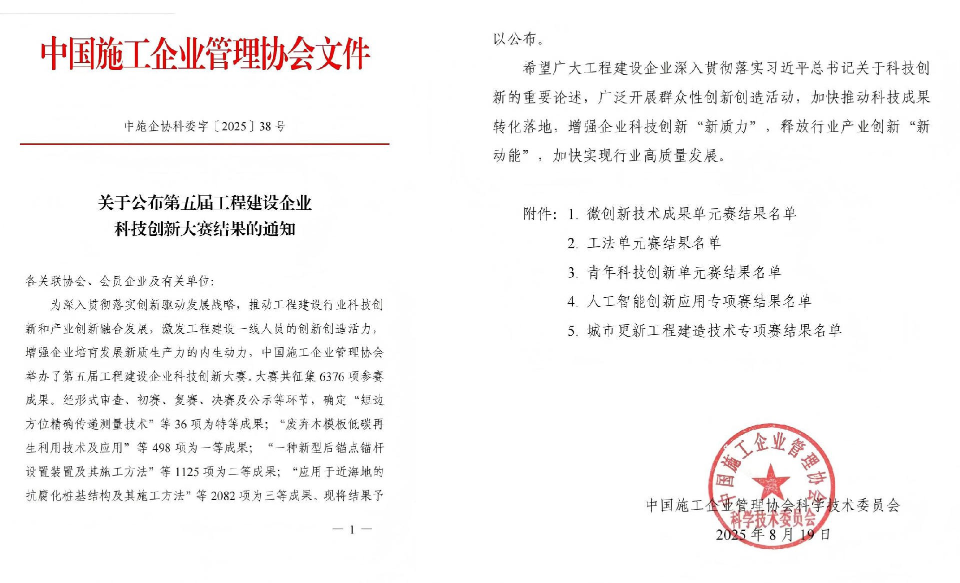 近日,第五屆全國工程建設(shè)企業(yè)科技創(chuàng)新大賽獲獎結(jié)果出爐,集團(tuán)在“青年科技創(chuàng)新單元賽”中斬獲一···